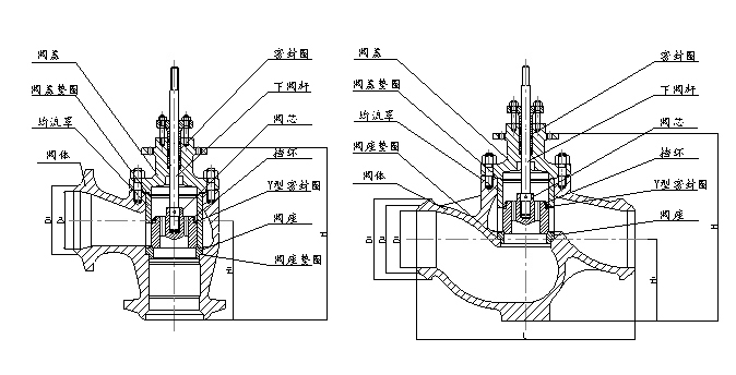 采用合理的阀芯和阀座接触面角度,所以该阀在关闭状态下没有泄漏现象;制造均流罩和阀芯的材料采用了优质不锈钢材料,即使在两相流动和节流状态下运行,汽蚀速度也是相当缓慢,这样就延长了阀门的使用寿命,噪声也很小。阀门设计均采用装拆简便的结构,当内部零件损坏,只要拆下阀盖螺帽,即可依次取出各个零件,随意更换任何零件,检修非常方便。